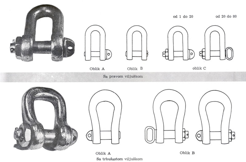 Izrada prema JUS C. H4. 080 i JUS C. H4. 081. Spoljna površina je zaštićena galvanskom prevlakom cinka—Gal Zn 24. Dostavljamo uverenja (ateste) o dozvoljenom opterećenju u t (to-na). Pri narudžbini navesti: proizvod, nazivnu veličinu (dozvoljeno opterećenje u-t) oblik i broj standarda. Primer Škopac sa pravom viljuškom, oblik A, nazivne veličine 1,6 (dozvoljeno optere-ćenje 1,6 tona), označava se: